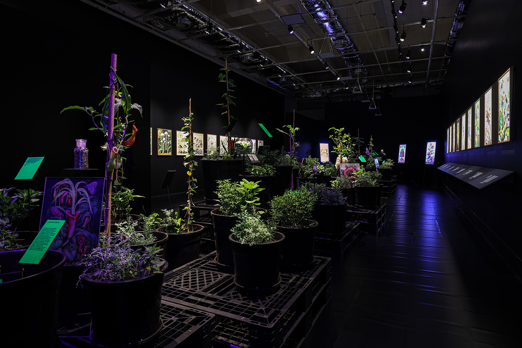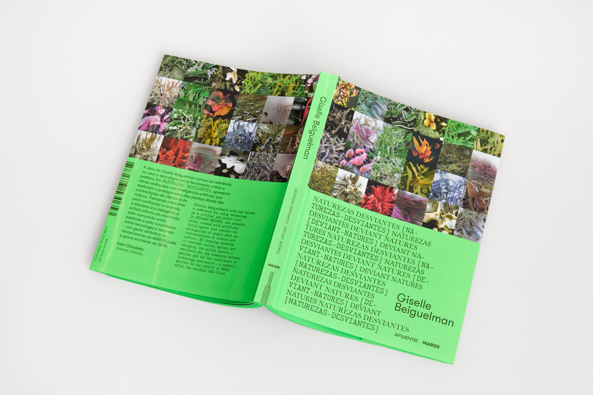 Identidade visual e sinalização para a exposição Naturezas Desviantes, de Giselle Beiguelman, no MARGS. A mostra reuniu três produções desenvolvidas nos últimos cinco anos, cada uma abordando relações entre botânica, colonialidade e tecnologias digitais: Botannica Tirannica que reinventa, com inteligência artificial, nomes de plantas marcados por estigmas (como Maria-sem-vergonha, Olho-de-mouro e Judeu-errante) criando o “jardim da resiliência”. Venenosas, Nocivas e Suspeitas que resgata plantas proibidas ou apagadas pelo processo colonial, narrando suas memórias a partir de mulheres invisibilizadas pela arte e pela ciência, e Beleza Corrosiva que discute o impacto ambiental das tecnologias digitais com um vídeo gerado por inteligência artificial e um processo colaborativo de doação de lixo eletrônico, posteriormente destinado a cooperativas de reciclagem. A exposição teve curadoria de Eder Chiodetto.