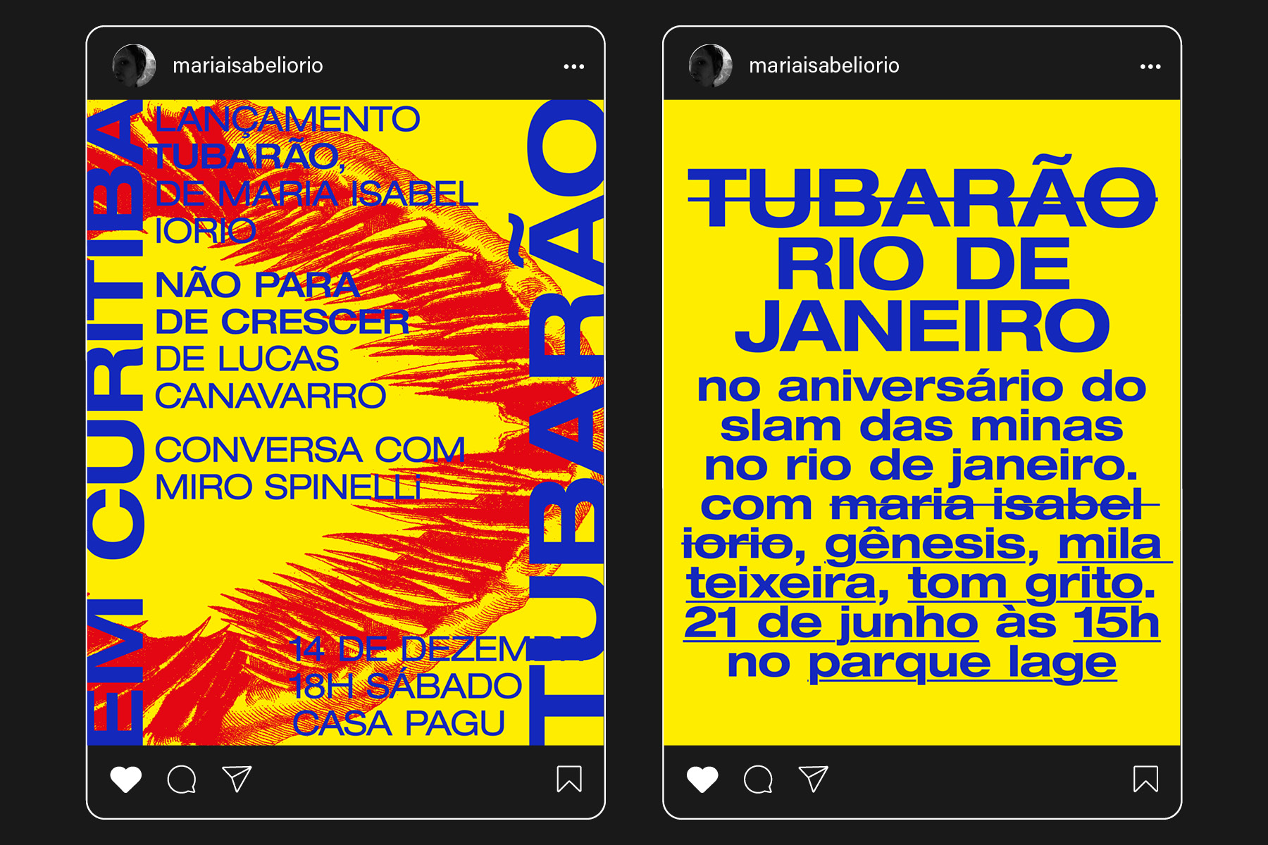 “TUBARÃO”, de Maria Isabel Iorio, é uma narrativa que mergulha nas profundezas da paixão e do perigo, onde escrever e se apaixonar se entrelaçam em ações que se contaminam. O poeta dialoga diretamente com uma destinatária, criando uma intimidade reveladora, enquanto o perigo espreita na figura do tubarão. O texto é desobediente e brutal, revelando-se através de uma sucessão de imagens em movimento, onde os personagens se definem por suas ações. Publicado pela Editora Diadorim, o livro expande os limites entre linguagem e sensação, capturando o leitor em seu fluxo voraz.